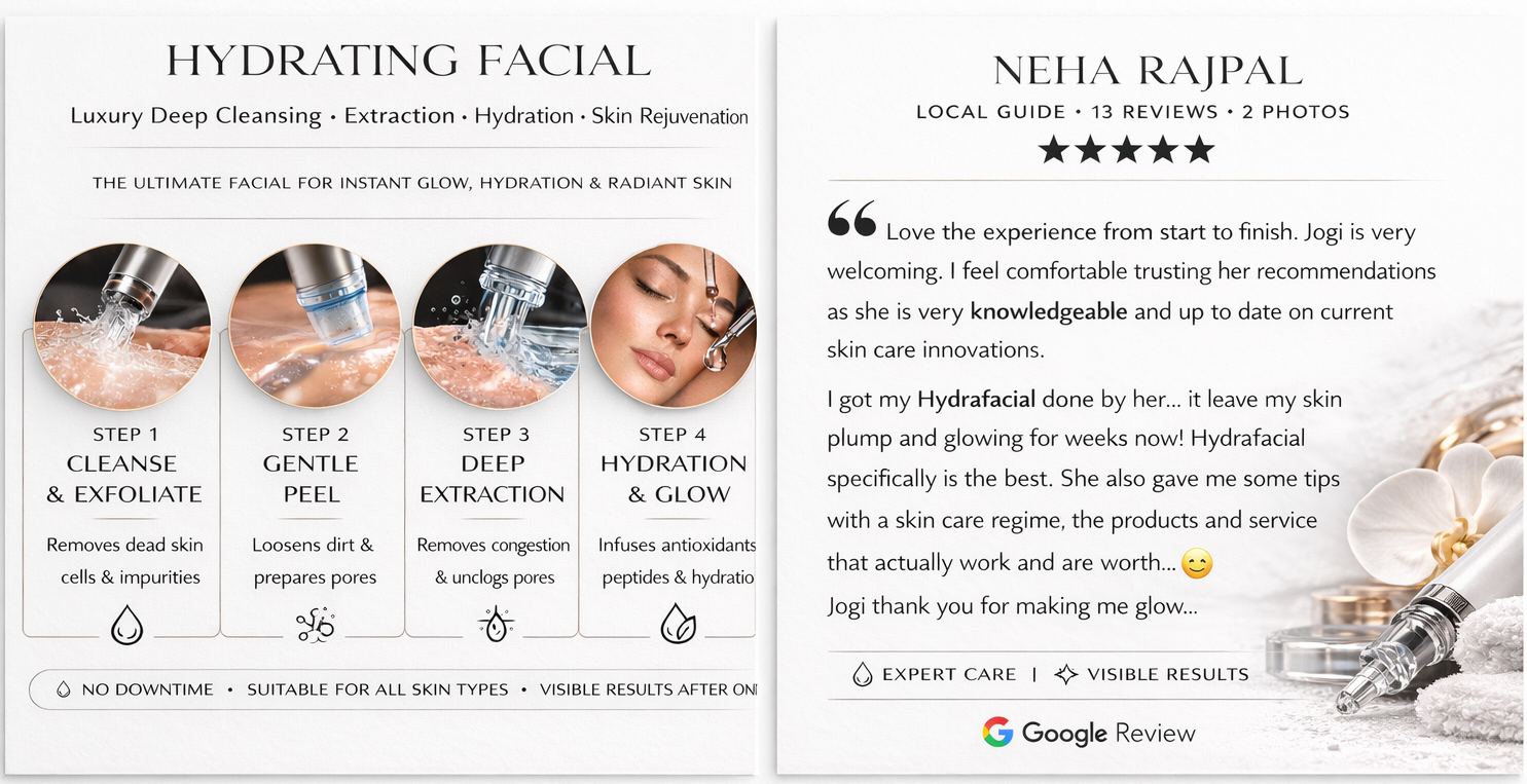 - Hydration: Customized serums rich in antioxidants and hyaluronic acid are infused to nourish and hydrate the skin.